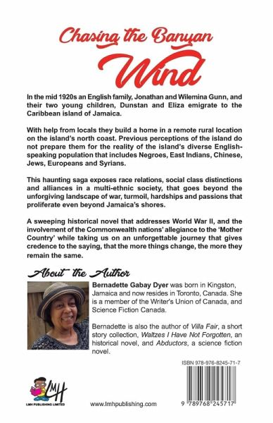 In the mid 1920s an English family, Jonathan and Wilemina Gunn, and their two young children, Dunstan and Eliza emigrate to the Caribbean island of Jamaica. With help from locals they build a home in a remote rural location on the island's north coast. Previous perceptions of the island do not prepare them for the reality of the island's diverse Englishspeaking population that includes Negroes, East Indians, Chinese,Jews, Europeans and Syrians. This haunting saga exposes race relations, social class distinctions and alliances in a multi-ethnic society, that goes beyond the unforgiving landscape of war, turmoil, hardships and passions that proliferate even beyond Jamaica's shores. A sweeping historical novel that addresses World War II, and the involvement of the Commonwealth nations' allegiance to the 'Mother Country' while taking us on an unforgettable journey that gives credence to the saying, that the more things change, the more they remain the same.