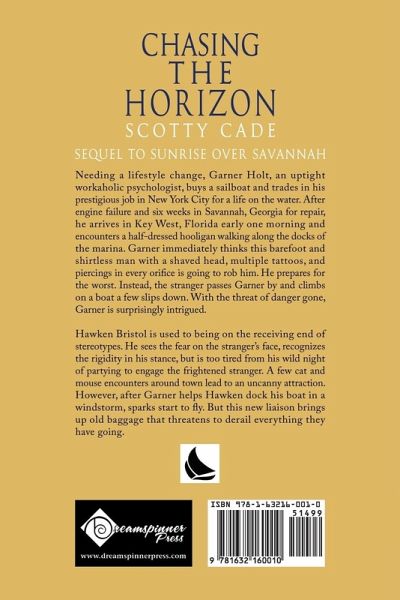 Sequel to Sunrise Over Savannah Needing a lifestyle change, Garner Holt, an uptight workaholic psychologist, buys a sailboat and trades in his prestigious job in New York City for a life on the water. After engine failure and six weeks in Savannah, Georgia for repair, he arrives in Key West, Florida early one morning and encounters a half-dressed hooligan walking along the docks of the marina. Garner immediately thinks this barefoot and shirtless man with a shaved head, multiple tattoos, and piercings in every orifice is going to rob him. He prepares for the worst. Instead, the stranger passes Garner by and climbs on a boat two slips down. With the threat of danger gone, Garner is surprisingly intrigued. Hawken Bristol is used to being on the receiving end of stereotypes. He sees the fear on the stranger's face, recognizes the rigidity in his stance, but is too tired from his wild night of partying to engage the frightened stranger. A few cat and mouse encounters around town lead to an uncanny attraction. However, after Garner helps Hawken dock his boat in a windstorm, sparks start to fly. But this new liaison brings up old baggage that threatens to derail everything they have going.