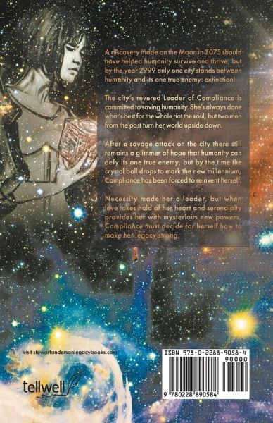 A discovery made on the Moon in 2075 should have helped humanity survive and thrive, but by the year 2999 only one city stands between humanity and its one true enemy: extinction! The city's revered Leader of Compliance is committed to saving humanity. She's always done what's best for the whole not the soul, but two men from the past turn her world upside down. After a savage attack on the city there still remains a glimmer of hope that humanity can defy its one true enemy, but by the time the crystal ball drops to mark the new millennium, Compliance has been forced to reinvent herself. Necessity made her a leader, but when love takes hold of her heart and serendipity provides her with mysterious new powers, Compliance must decide for herself how to make her legacy strong.