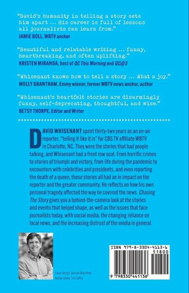 The book chronicles the long career of Charlotte, NC, television news reporter David Whisenant. From well-known crimes to the death of Queen Elizabeth II, from celebrity encounters to community disasters and amazing people, Whisenant covered a wide variety of subjects, and brings these stories to life with sensitivity and a bit of humor. The book also deals with the suicide of Whisenant's father and how the reporter used that trauma to promote mental wellness.