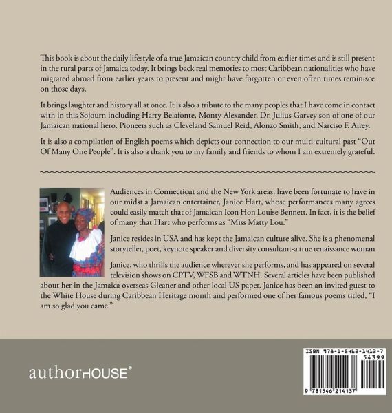 This book is about the daily lifestyle of a true Jamaican country child from earlier times and is still present in the rural parts of Jamaica today. It brings back real memories to most Caribbean nationalities who have migrated abroad from earlier years to present and might have forgotten or even often times reminisce on those days. It brings laughter and history all at once. It is also a tribute to the many peoples that I have come in contact with in this Sojourn including Harry Belafonte, Monty Alexander, Dr. Julius Garvey son of one of our Jamaican national hero. Pioneers such as Cleveland Samuel Reid, Alonzo Smith, and Narciso F. Airey. It is also a compilation of English poems which depicts our connection to our multi-cultural past ?Out Of Many One People?. It is also a thank you to my family and friends to whom I am extremely grateful.