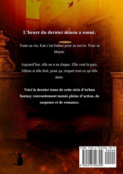 L'heure du dernier miaou a sonné. Toute sa vie, Kat s'est battue pour sa survie. Pour sa liberté. Aujourd'hui, elle en a sa claque. Elle veut la paix. Même si elle doit, pour ça, risquer tout ce qu'elle aime. Voici le dernier tome de cette série d'urban fantasy ronrondement menée pleine d'action, de suspense et de romance.