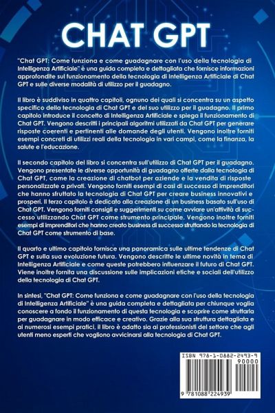 "Chat GPT: Come funziona e come guadagnare con l'uso della tecnologia di Intelligenza Artificiale" è una guida completa e dettagliata che fornisce informazioni approfondite sul funzionamento della tecnologia di Intelligenza Artificiale di Chat GPT e sulle diverse modalità di utilizzo per il guadagno. Il libro è suddiviso in quattro capitoli, ognuno dei quali si concentra su un aspetto specifico della tecnologia di Chat GPT e del suo utilizzo per il guadagno. Il primo capitolo introduce il concetto di Intelligenza Artificiale e spiega il funzionamento di Chat GPT. Vengono descritti i principali algoritmi utilizzati da Chat GPT per generare risposte coerenti e pertinenti alle domande degli utenti. Vengono inoltre forniti esempi concreti di utilizzi reali della tecnologia in vari campi, come la finanza, la salute e l'educazione. Il secondo capitolo del libro si concentra sull'utilizzo di Chat GPT per il guadagno. Vengono presentate le diverse opportunità di guadagno offerte dalla tecnologia di Chat GPT, come la creazione di chatbot per aziende e la vendita di risposte personalizzate a privati. Vengono forniti esempi di casi di successo di imprenditori che hanno sfruttato la tecnologia di Chat GPT per creare business innovativi e prosperi. Il terzo capitolo è dedicato alla creazione di un business basato sull'uso di Chat GPT. Vengono forniti consigli e suggerimenti su come avviare un'attività di successo utilizzando Chat GPT come strumento principale. Vengono inoltre forniti esempi di imprenditori che hanno creato business di successo sfruttando la tecnologia di Chat GPT come strumento di base. Il quarto e ultimo capitolo fornisce una panoramica sulle ultime tendenze di Chat GPT e sulla sua evoluzione futura. Vengono descritte le ultime novità in tema di Intelligenza Artificiale e come queste potrebbero influenzare il futuro di Chat GPT. Viene inoltre fornita una discussione sulle implicazioni etiche e sociali dell'utilizzo della tecnologia di Chat GPT. In sintesi, "Chat GPT: Come funziona e come guadagnare con l'uso della tecnologia di Intelligenza Artificiale" è una guida completa e dettagliata per chiunque voglia conoscere a fondo il funzionamento di questa tecnologia e scoprire come sfruttarla per guadagnare in modo efficace e creativo. Grazie alla sua struttura dettagliata e ai numerosi esempi pratici, il libro è adatto sia ai professionisti del settore che agli utenti meno esperti che vogliono avvicinarsi alla tecnologia di Chat GPT.
