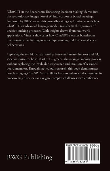 "ChatGPT in the Boardroom: Enhancing Decision Making" delves into the revolutionary integration of AI into corporate board meetings. Authored by Bill Vincent, this groundbreaking exploration reveals how ChatGPT, an advanced language model, transforms the dynamics of decision-making processes. With insights drawn from real-world applications, Vincent showcases how ChatGPT elevates boardroom discussions by facilitating increased questioning and fostering deeper deliberations. Exploring the symbiotic relationship between human directors and AI, Vincent illustrates how ChatGPT augments the strategic inquiry process without replacing the invaluable experience and intuition of seasoned board members. Through meticulous research, this book demonstrates how leveraging ChatGPT's capabilities leads to enhanced decision quality, empowering directors to navigate complex challenges with confidence.