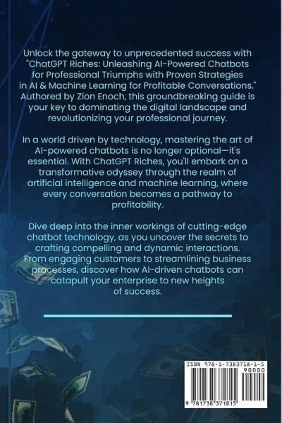 Are you ready to unlock the gateway to unprecedented success? Wondering how some white & black folks got so rich while you're still stuck in the rat race? Welcome to a world where AI-powered chatbots reign supreme and conversations become pathways to profitability.Dive deep into the inner workings of cutting-edge chatbot technology and uncover the secrets to crafting compelling and dynamic interactions. From engaging customers to streamlining business processes, discover how AI-driven chatbots can catapult your enterprise to new heights of success.Packed with actionable insights and battle-tested strategies, "ChatGPT Riches" empowers you to harness the full potential of AI for unparalleled growth and prosperity.And here's the kicker: You don't need to be a tech genius to benefit from ChatGPT Riches. With user-friendly tips and step-by-step instructions, even the most technologically challenged individuals can leverage the power of AI to elevate their businesses.But what exactly can AI-powered chatbots do for your business? Let's delve into the benefits:Enhanced Customer Engagement: AI chatbots enable personalized interactions with customers, leading to higher engagement and satisfaction levels. By understanding customer preferences and behaviors, businesses can tailor their offerings to meet individual needs, fostering long-term loyalty and trust. Streamlined Operations: ChatGPT for teachers and businesses alike streamlines operations by automating repetitive tasks such as customer inquiries, appointment scheduling, and order processing. This frees up valuable time and resources, allowing organizations to focus on strategic initiatives and innovation. Increased Sales and Revenue: By leveraging AI chatbots to provide real-time assistance and recommendations, businesses can drive conversions and increase sales. Whether it's guiding customers through the purchasing process or upselling complementary products, chatbots act as virtual sales assistants, driving revenue growth. Cost Savings: Implementing AI chatbots can significantly reduce operational costs associated with customer support, sales, and administrative tasks. With automated processes in place, businesses can operate more efficiently and allocate resources towards areas that drive the most value. Scalability: AI chatbots are highly scalable, capable of handling thousands of interactions simultaneously without compromising on quality. This scalability is essential for businesses experiencing rapid growth or seasonal fluctuations in demand, ensuring seamless customer experiences regardless of volume. Competitive Advantage: In today's competitive landscape, staying ahead of the curve is crucial for success. By embracing AI-powered chatbots early on, businesses can gain a competitive advantage by offering innovative and personalized experiences that set them apart from the competition. Whether you're a seasoned professional or a budding innovator, this definitive guide offers something for everyone. From developing apps with GPT-4 and ChatGPT to leveraging AI chatbots for teachers, automating business workflow, and the opportunities are limitless. Don't just dream of a brighter tomorrow-seize it with both hands. Your journey to professional triumph starts here.Experience the future of business communication. Experience ChatGPT Riches.