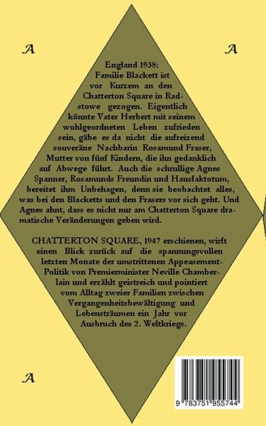 England 1938: Familie Blackett ist vor Kurzem an den Chatterton Square in Radstowe gezogen. Eigentlich könnte Vater Herbert mit seinem wohlgeordneten Leben zufrieden sein, gäbe es da nicht die aufreizend souveräne Nachbarin Rosamund Fraser, Mutter von fünf Kindern, die ihn gedanklich auf Abwege führt. Auch die schrullige Agnes Spanner, Rosamunds Freundin und Hausfaktotum, bereitet ihm Unbehagen, denn sie beobachtet alles, was bei den Blacketts und den Frasers vor sich geht. Und Agnes ahnt, dass es nicht nur am Chatterton Square dramatische Veränderungen geben wird.CHATTERTON SQUARE, 1947 erschienen, wirft einen Blick zurück auf die spannungsvollen letzten Monate der umstrittenen Appeasement-Politik von Premierminister Neville Chamberlain und erzählt geistreich und pointiert vom Alltag zweier Familien zwischen Vergangenheitsbewältigung und Lebensträumen ein Jahr vor Ausbruch des 2. Weltkriegs.