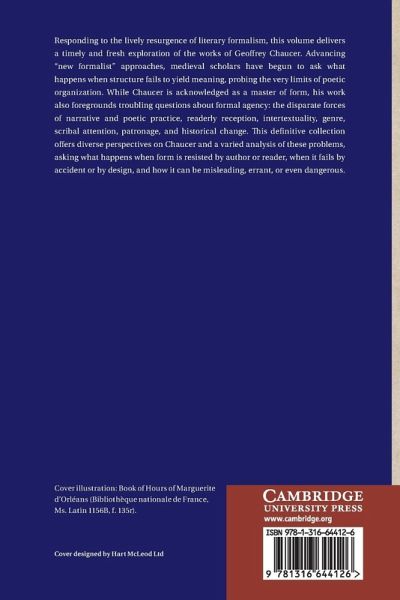 Brings 'new formalist' approaches to Chaucer, focusing on formal agency, bodies, disability, ethics, poetics, reception, and scale.