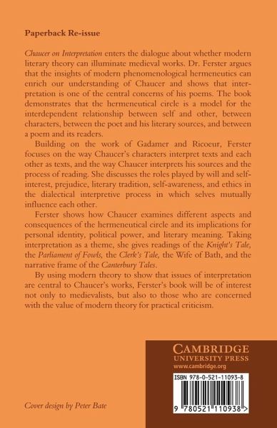 Chaucer on Interpretation enters the current dialogue about whether modern literary theory can illuminate medieval works.
