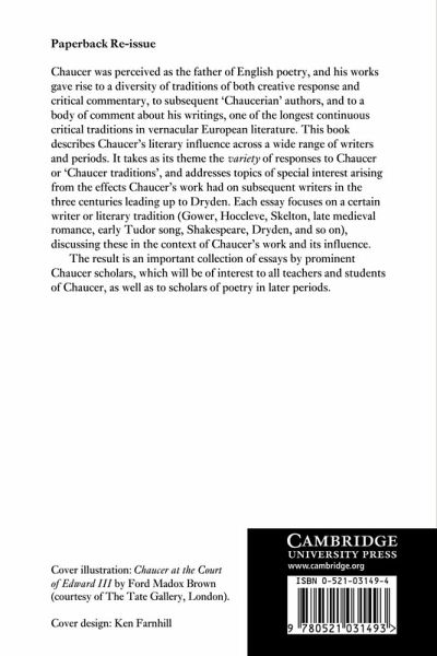 Chaucer was perceived as the father of English poetry, and his works gave rise to a diversity of traditions of both creative response and critical commentary, to subsequent 'Chaucerian' authors and to a body of comment about his writings. This book describes Chaucer's literary influence across a wide range of writers and periods. It takes as its theme the variety of responses to Chaucer or 'Chaucer Traditions', and addresses topics of special interest arising from the effects Chaucer's work had on subsequent writers in the three centuries leading up to Dryden. Each essay focuses on a certain writer or literary tradition discussing these in the context of Chaucer's work and its influence. The result is an important collection of essays which will be of interest to all teachers and students of Chaucer, as well as to scholars of poetry in later periods.