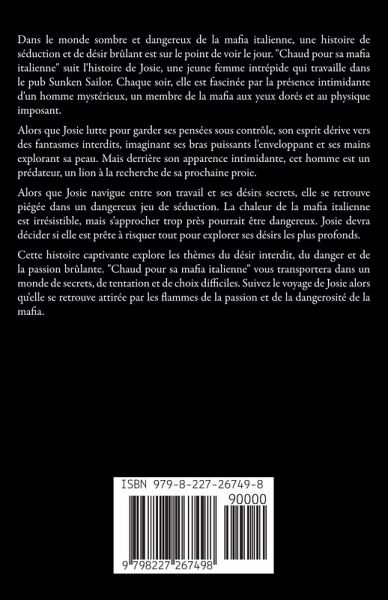 Dans le monde sombre et dangereux de la mafia italienne, une histoire de séduction et de désir brûlant est sur le point de voir le jour. "Chaud pour sa mafia italienne" suit l'histoire de Josie, une jeune femme intrépide qui travaille dans le pub Sunken Sailor. Chaque soir, elle est fascinée par la présence intimidante d'un homme mystérieux, un membre de la mafia aux yeux dorés et au physique imposant. Alors que Josie lutte pour garder ses pensées sous contrôle, son esprit dérive vers des fantasmes interdits, imaginant ses bras puissants l'enveloppant et ses mains explorant sa peau. Mais derrière son apparence intimidante, cet homme est un prédateur, un lion à la recherche de sa prochaine proie. Alors que Josie navigue entre son travail et ses désirs secrets, elle se retrouve piégée dans un dangereux jeu de séduction. La chaleur de la mafia italienne est irrésistible, mais s'approcher trop près pourrait être dangereux. Josie devra décider si elle est prête à risquer tout pour explorer ses désirs les plus profonds. Cette histoire captivante explore les thèmes du désir interdit, du danger et de la passion brûlante. "Chaud pour sa mafia italienne" vous transportera dans un monde de secrets, de tentation et de choix difficiles. Suivez le voyage de Josie alors qu'elle se retrouve attirée par les flammes de la passion et de la dangerosité de la mafia.