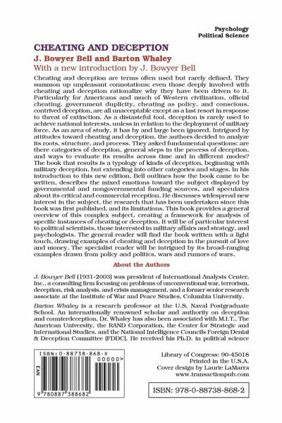 Cheating and deception are terms often used but rarely defined. They summon up unpleasant connotations; even those deeply involved with cheating and deception rationalize why they have been driven to it. Particularly for Americans and much of Western civilization, official cheating, government duplicity, cheating as policy, and conscious, contrived deception, are all unacceptable except as a last resort in response to threat of extinction. As a distasteful tool, deception is rarely used to achieve national interests, unless in relation to the deployment of military force. As an area of study, it has by and large been ignored.Intrigued by attitudes toward cheating and deception, the authors decided to analyze its roots, structure, and process. They asked fundamental questions: are there categories of deception, general steps in the process of deception, and ways to evaluate its results across time and in different modes? The book that results is a typology of kinds of deception, beginning with military deception, but extending into other categories and stages.In his introduction to this new edition, Bell outlines how the book came to be written, describes the mixed emotions toward the subject displayed by govenmental and nongovernmental funding sources, and speculates about its critical and commercial reception. He discusses widespread new interest in the subject, the research that has been undertaken since this book was first published, and its limitations.This book provides a general overview of this complex subject, creating a framework for analysis of specific instances of cheating or deception. It will be of particular interest to political scientists, those interested in military affairs and strategy, and psychologists. The general reader will find the book written with a light touch, drawing examples of cheating and deception in the pursuit of love and money. The specialist reader will be intrigued by its broad-ranging examples drawn from policy and politics, wars and rumors of wars.