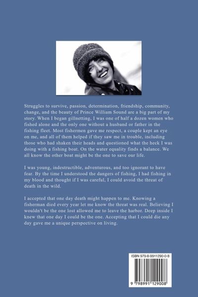 Struggles to survive, passion, determination, friendship, community, the beauty of Prince William Sound, and change are a big part of my story. When I began gillnetting, I was one of half a dozen women who fished alone. Most fishermen gave me respect, a couple kept an eye on me, and all of them helped if they saw me in trouble, including those who had shaken their heads and questioned what the heck I was doing with a fishing boat. On the water equality finds a balance. We all know the other boat might be the one to save our life. I was young, indestructible, adventurous, and too ignorant to have fear. By the time I understood the dangers of fishing, I had fishing in my blood and thought if I was careful, I could avoid the threat of death in the wild. I accepted that one day death might happen to me. Knowing a fisherman died every year let me know the threat was real. Believing I wouldn't be the one lost allowed me to leave the harbor. Deep inside I knew that one day I could be the one. Accepting that I could die any day gave me a unique perspective on living.