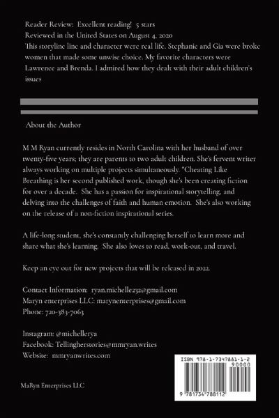 MM Ryan is a passionate author of compelling Christian fiction through the lens of the African American experience. Her contemporary and uplifting stories center around women and their struggles for abundant life and transformational faith in a world that tries to silence both. She is married and resides in North Carolina. "Worth Saving" and "Cheating Like Breathing are her two published works featuring captivating and clean fiction, and she has multiple projects in the works. As a life-long student, she's constantly challenging herself to learn more and share what she's learned. She also loves to read, work out, and travel. Her captivating novels are must-reads filled with faith, wisdom, and timeless truths. Keep an eye out for new projects that will be available soon.