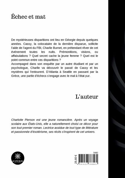 De mystérieuses disparitions ont lieu en Géorgie depuis quelques années. Cassy, la colocataire de la dernière disparue, sollicite l¿aide de l¿agent du FBI, Charlie Burnet, en prétendant rêver de cet événement toutes les nuits. Prémonitions, visions, ou affabulations ? Quel secret cache la jeune femme ? Quel est le point commun entre ces disparitions ? Accompagné dans son enquête par un autre étudiant et par un psychologue, Charlie va découvrir le passé de Cassy et les mystères qui l¿entourent. D¿Atlanta à Seattle en passant par la Grèce, une partie d¿échecs s¿engage avec le mal à l¿état pur.