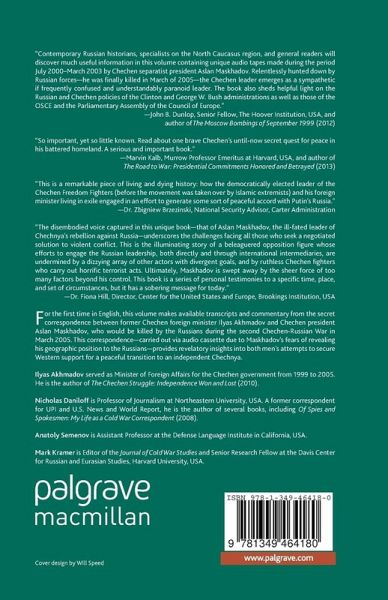 This volume makes available transcripts and commentary from the secret correspondence between former Chechen foreign minister Ilyas Akhmatov and Chechen President Aslan Maskhadov. This correspondence provides revelatory insights into both men's attempts to secure Western support for a peaceful transition to an independent Chechnya.