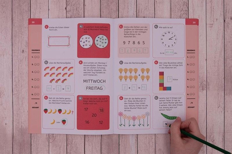 Mit diesem bunten Heft können Kinder in der 1. Klasse ihre Fähigkeiten in Mathe auch zu Hause auf die Probe stellen. Zahlreiche Rechenübungen, Textaufgaben und mehr sind hier in Form von kurzen Tests aufbereitet und helfen den Kindern, das in der Schule Gelernte zu festigen.