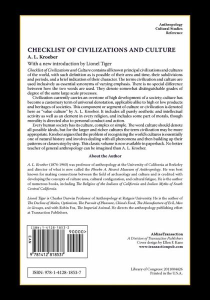 Checklist of Civilizations and Culture contains all known principal civilizations and cultures of the world, with such definition as is possible of their area and time, their subdivisions and periods, and a brief indication of their character. The terms civilization and culture are used inclusively as essential synonyms of varying emphasis. There is no special difference between how the two words are used. They denote somewhat distinguishable grades of degree of the same large scale processes.Civilization currently carries an overtone of high development of a society; culture has become a customary term of universal denotation, applicable alike to high or low products and heritages of societies. This component or segment of culture or civilization is denoted here as "value culture" by A. L. Kroeber. It includes all purely aesthetic and intellectual activity as well as an element in every religion, and includes some part of morals, though morality is directed also to personal conduct and action.Every human society has its culture, complex or simple. The word culture should denote all possible ideals, but for the larger and richer cultures the term civilization may be more appropriate. Kroeber argues that the problem of recognizing the world's cultures is essentially one of natural history and involves dealing with all phenomena and then building up their patterns or classes step by step. This classic volume is now available in paperback. No better teacher of general anthropology can be imagined than A. L. Kroeber.