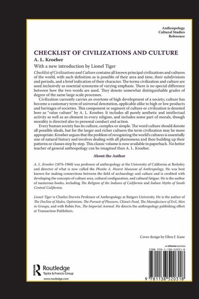 Checklist of Civilizations and Culture contains all known principal civilizations and cultures of the world, with such definition as is possible of their area and time, their subdivisions and periods, and a brief indication of their character