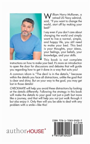 William Harry McRaven, a retired US Navy admiral, said, "If you want to change the world, start off by making your bed!" I say even if you don't care about changing the world and simply want to live a normal, simple, and happy life, you still need to make your bed. This bed is your thoughts, your ideas, your feelings, your beliefs, your knowledge, and your skills. This book is not complete instructions on how to make your bed. It's more an introduction to open the door for discussions and debates that will guide you regarding how to get it done in a way that suits you! A common idiom is "The devil is in the details," because within the details you face all distractions, unlike the goal that is clear and shiny. But on your way to the goal, you may get lost in those details! CHECKMATE will help you avoid these distractions by looking at the details differently. Following the strategy in this book will make the details to your goal not just a path but more like a journey, and that will help you not just walk through it but also enjoy it. Only then will you be able to deal with any problem with a smile-like this!