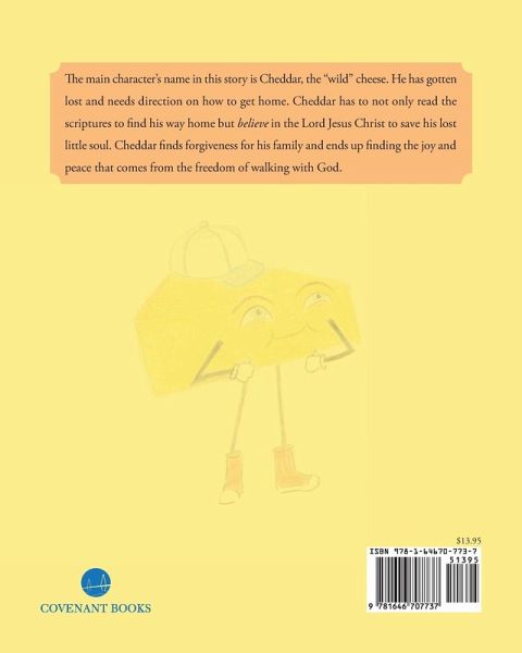 The main character’s name in this story is Cheddar, the "wild" cheese. He has gotten lost and needs direction on how to get home. Cheddar has to not only read the scriptures to find his way home but believe in the Lord Jesus Christ to save his lost little soul. Cheddar finds forgiveness for his family and ends up finding the joy and peace that comes from the freedom of walking with God.
