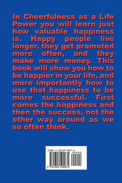 In Cheerfulness as a Life Power you will learn just how valuable happiness is. Happy people live longer, they get promoted more often, and they make more money. This book will show you how to be happier in your life, and more importantly how to use that happiness to be more successful. First comes the happiness and then the success, not the other way around as we so often think.