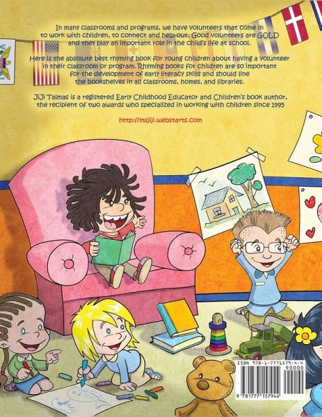 In many classrooms and programs we have volunteers that come in to work with children, connect, and help out. good volunteers are GOLD and they play an important role in a child's life at school. Here is the absolute best rhyming book for young children about having a volunteer in their classroom or program. Rhyming books are so important for the development of early literacy skills and should be in the bookshelves in every classroom and library. JiJiTalmas.com