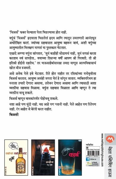 `CHEERS!` THE GLASSES CLINK ON EACH OTHER. OF COURSE, THAT IS NOT THE ONLY TIME FOR `CHEERS`. VAPU`S `CHEERS` TOUCHES EVERY SOUL AND PRODUCES THE RHYTHMIC CLINKING, RESULTING INTO CHEERING UP OF THE HEARTS TOGETHER, SPREADING HAPPINESS. VAPU, A PATRON OF HAPPINESS, A COLLECTOR OF HUMAN BEINGS, A FAN OF UNIQUE CHARACTERS; HELPING US TO MEET ALL THESE EXCLUSIVE AND EXQUISITE PEOPLE THROUGH HIS WORD-PORTRAITS, IN `CHEERS!` ANNA ADVISES VAPU, `DON`T EVER DISCARD THE OLD. WHILE PRACTISING IT, YOU WILL COME ACROSS NEW. THE FIRST LETTER THAT WE WRITE IS AT THE AGE OF THREE. THEREAFTER, WE KEEP ON WRITING TILL OUR LAST BREATH.` SOMEWHERE SOME NOBLE BHAUSAHEB IMPLANTS THE SEED OF CONFIDENCE, DEEP DOWN. WE COME ACROSS MANY SUCH `GLASSES`, TRANSPARENT IN THEIR ATTITUDE AND CLEAR IN THEIR MIND. THEY REMAIN FULL FOREVER. THEY REFRESH OUR MINDS WHILE CHEERING US UP. INTRODUCTION OF PERSONALITIES SHOULD ALWAYS CHEER UP PEOPLE. SOME GET THE OPPORTUNITY TO BE IN THE COMPANY OF SUCH NOBLE PEOPLE. VAPU HAD BEEN ONE OF THEM. HIS GREATNESS LIES IN HIS READING SKILLS WHICH HE FURTHER PEN-PORTRAYED FOR HIS READERS. THAT IS HOW WE READERS ARE TOUCHED WITH HIS `CHEERS!` IT IS INTOXICATING BUT NOT INTIMIDATING; IT IS ALCOHOLIC BUT NOT SEDUCING. THERE ARE GLASSES, BUT THEY ARE NOT EMPTY. THERE ARE COLOURS, BUT THEY DO NOT SPOIL THE BEAUTY. CHEERS!