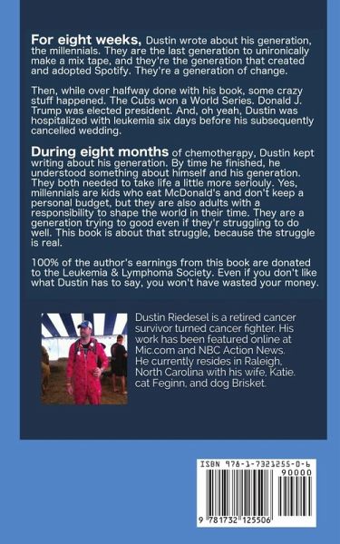 From the author: "What's the book about?" That’s the first thing everyone asks me. I say, "It’s about millennials," because an elevator pitch is the opposite of a book and because I’m lazy. Now let me explain. Millennials met the world at a very strange time in its life. We’re the last generation to unironically make a mix tape. We used to get up early on Saturday mornings because that was the only time cartoons were on. We actually used rotary phone dials. We were raised by people who taught us valuable life skills we’ll never use again, like writing in cursive and balancing a checkbook. We thought Gatorade was a healthy drink. We used to call inanimate objects "gay" as an insult. That stuff is us. But we’re also the generation that created Spotify. TV airs on our schedule (and it "airs" like phones "dial"). We text because phone calls are too intimate. We go months without touching cash (what is the checkbook balancing on anyway?). When it comes to health, we know people who believe in being vegan like our moms believe in Jesus. And there’s nothing we tolerate less than intolerance, of sexual orientation or otherwise. All of this stuff is us, so is it any surprise we’re a contradictory mess? We’re a generation of change. When I started writing this book in September of 2016, I thought all that stuff was what this book was about. I thought it would be a humorous explanation of why we’re misunderstood, and I’d write it in a way that mimicked the best and worst of who we are. I wanted people to read it, so I wanted to make it funny. It would be love letter of insults. It would be a gentle defense of crappy attitudes. This would be an ode to millennials, long may we prosper and suck (or something like that). And most of that stuff is still in here. At least, those five sections still make up the structure. But in the seven months between when I started writing and when I finished my second draft in March of 2017, some crazy stuff happened: The Cubs won the World Series. La La Land didn’t win Best Picture, but Moonlight did. Donald Trump was elected president. My dog died. And, oh yeah, I was hospitalized for blood cancer—acute promyelocytic leukemia—six days before my subsequently cancelled wedding. I am not the same person that started writing this book in 2016, and I don’t think my generation is the same either. So what’s this book about? This book is not just kidding around about who millennials are. This book is about how we’re seriously trying to become better. By time you read this, I will have rescheduled that wedding and have gotten married. I will have also tested negative for the genetic mutation that caused my cancer. I am on the other side of events far more serious than I’d ever faced before I started writing this book, and I now understand something about myself: I am growing up. This is the most interesting thing about millennials: we are growing up. Yes, we’re kids who eat McDonald’s and don’t keep a personal budget, but we’re also adults with the responsibility to shape the world in our time. We are a generation that wants to do good even if we’re struggling to do well. This book is about the struggle, because the struggle is real.