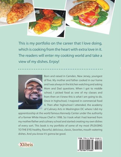 Born and raised in Camden, New Jersey, youngest of five. My mother and father cooked in our home and I was always in the kitchen watching and asking Mom and Dad questions. When I got to middle school, I picked food as one of my classes and from then on I knew this is what I am going to do. Once in highschool, I majored in commercial food 4. Then after highschool I attended, the academy of Culinary Arts in Washington DC where I did my apprenticeship at the world famous Kennedy Center under the authority of a former White House Chef in 1998. So I took what I had learned from my mother/father and culinary school and started creating my own dishes of every sort. This book is my portfolio of some of my most (PLEASING TO THE EYE) healthy, flavorful, delicious, classic, favorites, mouth-watering dishes. And you know it's gonna be good.
