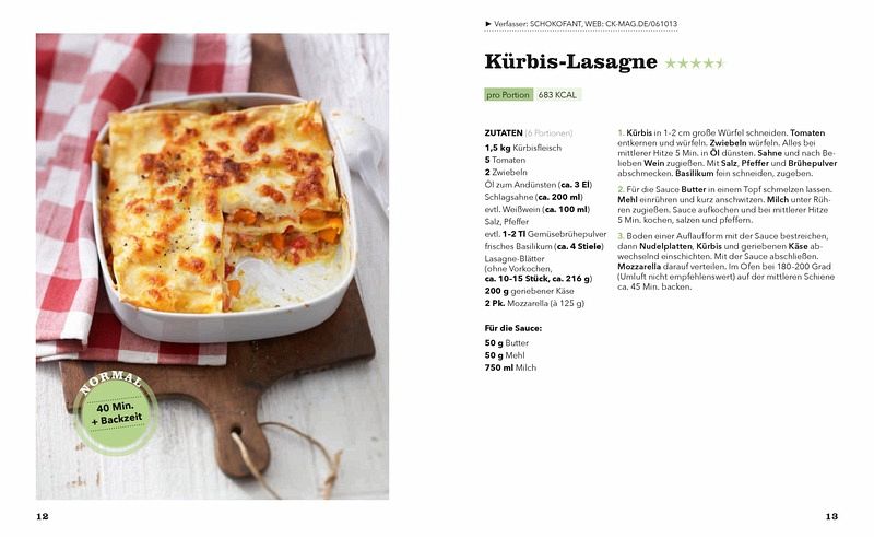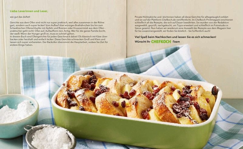 Wie das duftet! Gibt es etwas Behaglicheres als einen Backofen, in dem einGericht auf dem Blech oder in der Auflaufform genüsslich vor sich hin brutzelt?Wer für die ganze Familie kocht, der weiß: Wenn der Hunger groß ist, muss esschnell gehen. Und was könnte praktischer sein als: Ofen auf, Auflaufform rein,fertig? Vom Auflauf über würziges Brathähnchen bis hin zum SchwäbischenOfenschlupfer mit Äpfeln und Rosinen oder Knuspermüsli aus dem Ofen -in diesem Buch sind Ofengerichte für jeden Geschmack dabei!Hier findet jeder Ofenliebhaber all die Köstlichkeiten, die ihn glücklich machen.Und das Beste: Alle Rezepte sind für Sie aus dem Chefkoch-Magazin zusammengestellt,von zahllosen Hobbyköchen nachgekocht und vielfach erprobt.So sind Sie bei der Zubereitung immer auf der sicheren Seite!