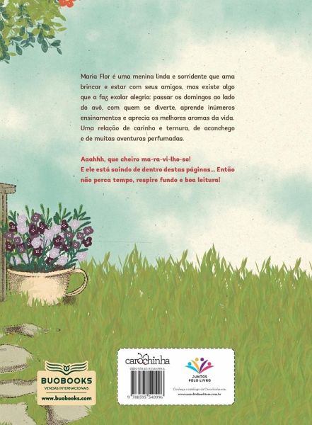 Maria Flor é uma menina linda e sorridente que ama brincar e estar com seus amigos, mas existe algo que a faz exalar alegria: passar os domingos ao lado do avô, com quem se diverte, aprende inúmeros ensinamentos e aprecia os melhores aromas da vida. Uma relação de carinho e ternura, de aconchego e de muitas aventuras perfumadas. ¿Ah, que cheiro ma-ra-vi-lho-so!¿ Ele está saindo de dentro destas páginas! Então não perca tempo, respire fundo e boa leitura!