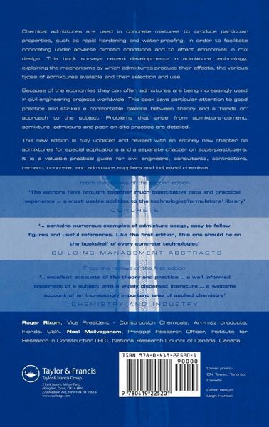 Chemical admixtures are used in concrete mixtures to produce particular engineering properties such as rapid hardening, water-proofing or resistance to cold. Chemical Admixtures for Concrete surveys recent developments in admixture technology, explaining the mechanisms by which admixtures produce their effects, the various types of admixtures available, their selection and use. Because of the economies they can offer, admixtures are being used increasingly in civil engineering projects worldwide. The book pays particular attention to good practice and includes a detailed chapter on the international standards currently in force.