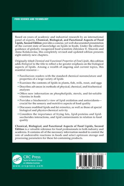 Based on years of academic and industrial research by an international panel of experts, Chemical, Biological, and Functional Properties of Food Lipids, Second Edition provides a concise, yet well-documented presentation of the current state of knowledge on lipids. Under the editorial guidance of globally recognized food scientists Zdzis¿aw E. Sikorski and Anna Köakowska, this completely revised and updated edition presents eight entirely new chapters. It is an ideal reference for both professional and aspiring food scientists in both industry and academia. It contains all of the necessary information needed to control the rate of undesirable reactions in foods and select optimum storage and processing parameters for these delicate fats.