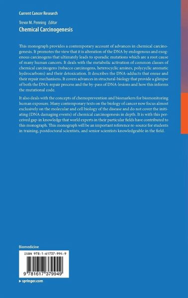 This volume will provide a contemporary account of advances in chemical carcinogenesis. It will promote the view that it is chemical alteration of the DNA that is a route cause of many cancers. The multi-stage model of chemical carcinogenesis, exposure to major classes of human carcinogens and their mode-of-action will be a focal point. The balance between metabolic activation to form biological reactive intermediates and their detoxification, ensuing DNA-lesions and their repair will be profiled. It will describe the chemical changes that occur in DNA that result from endogenous insults including epigenetic changes that lead to gene silencing. It will describe major mechanisms of mutagenesis, affects on tumor suppressor genes and proto-oncogenes, and how cell-cycle check points can be by-passed by the "stealth-like" properties of chemical carcinogens. Environmental agents that can promote tumor formation will be discussed. The monograph will have wide appeal as a knowledge base for graduate students, post-doctoral fellows and faculty interested in this aspect of cancer causation and research.