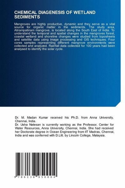 Mangroves are highly productive, dynamic and they serve as a vital source for organic matter in the sediments. The study area, Atirampatinam mangrove, is located along the South East of India. To understand the temporal and spatial changes in the mangroves forest, coastal wetland and shoreline changes were studied from toposheets and satellite data using image processing and GIS techniques. Four cores samples representing different mangrove environments were collected and analyzed. Rainfall data collected for 100 years had been analysed to identify the solar cycle.
