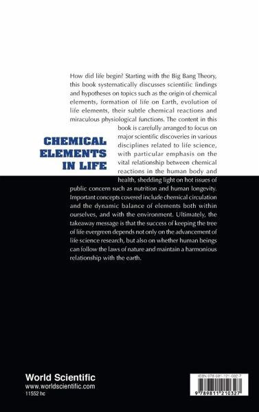 How did life begin? Starting with the Big Bang Theory, this book systematically discusses scientific findings and hypotheses on topics such as the origin of chemical elements, formation of life on Earth, evolution of life elements, their subtle chemical reactions and miraculous physiological functions. The content in this book is carefully arranged to focus on major scientific discoveries in various disciplines related to life science, with particular emphasis on the vital relationship between chemical reactions in the human body and health, shedding light on hot issues of public concern such as nutrition and human longevity. Important concepts covered include chemical circulation and the dynamic balance of elements both within ourselves, and with the environment. Ultimately, the takeaway message is that the success of keeping the tree of life evergreen depends not only on the advancement of life science research, but also on whether human beings can follow the laws of nature and maintain a harmonious relationship with the earth.