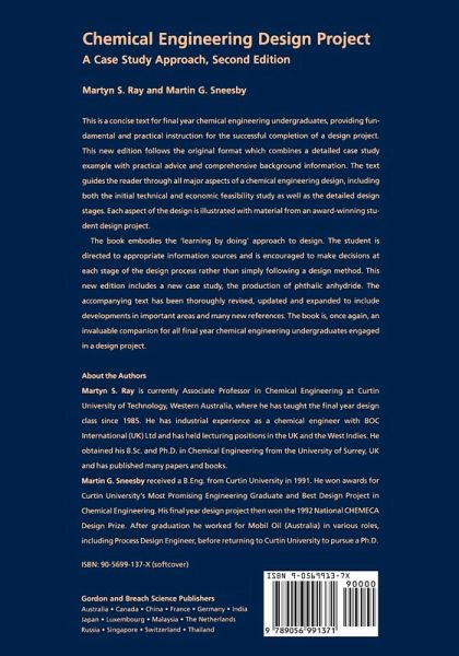 Martyn S. Ray is currently Associate Professor in Chemical Engineering at Curtin University of Technology, Western Australia, where he has taught the final year design class since 1985. He has industrial experience as a chemical engineer with BOC International (UK) Ltd and has held lecturing positions in the UK and the West Indies. He obtained his B.Sc. and Ph.D. in Chemical Engineering from the University of Surrey, UK and has published many papers and books. Martin G. Sneesby received a B.Eng. from Curtin University in 1991. He won awards for Curtin University's Most Promising Engineering Graduate and Best Design Project in Chemical Engineering. His final year design project then won the 1992 National CHEMECA Design Prize. After graduation he worked for Mobil Oil (Australia) in various roles, including Process Design Engineer, before returning to Curtin University to pursue a Ph.D.