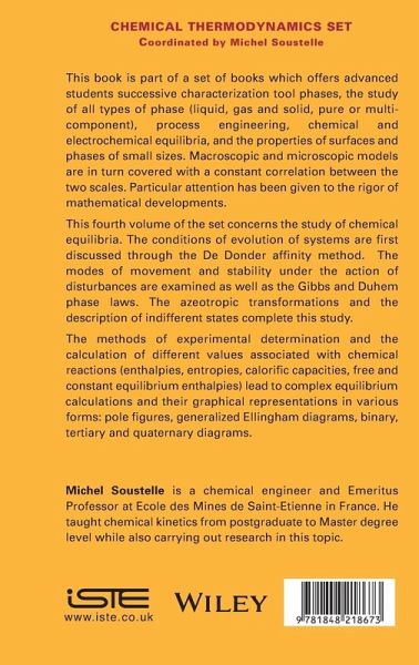 The book offers advanced students, in 7 volumes, successively characterization tools phases, the study of all types of phase, liquid, gas and solid, pure or multi-component, process engineering, chemical and electrochemical equilibria, the properties of surfaces and phases of small sizes. Macroscopic and microscopic models are in turn covered with a constant correlation between the two scales. Particular attention was given to the rigor of mathematical developments. Besides some very specialized books, the vast majority of existing works are intended for beginners and therefore limited in scope. There is no obvious connection between the two categories of books, general books does not go far enough in generalizing concepts to enable easy reading of advanced literature. The proposed project aims to give readers the ability to read highly specialized publications based on a more general presentation of the different fields of chemical thermodynamics. Consistency is ensured between the basic concepts and applications. So we find, in the same work, the tools, their use and comparison, for a more general macroscopic description and a microscopic description of a phase.
