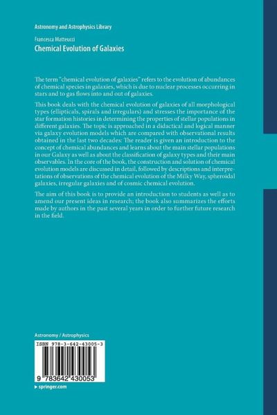 "In order to evolve a galaxy, you must choose a mass of gas; decide on a prescription for turning it into stars ... . Matteucci's book explains ... how to do all these things, ending with a discussion of cosmic chemical evolution ... . anyone wanting to get up to speed quickly on the topic should find the book very useful. It is mercifully short and has lots of nice figures comparing models and data for abundance gradients, correlations of various elements, and so forth." (Virginia Trimble, The Observatory, Vol. 132 (1229), August, 2012)