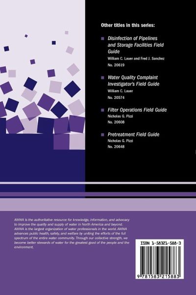 This pocket field guide explains dry, liquid, and gas chemical feed systems, calibrations, and handling and storage requirements for various types of chemicals used in water treatment. Handy feed calculators for gas, liquid, and dry chemicals are included. Table of Contents 1. Chemical Feed Quality Control 2. Chemical Feed-Common System Components 3. Chemical Feed of Gases-Equipment and Systems 4. Chemical Feed of Gases-Calculations and Examples 5. Dry Chemical Feeders and Systems 6. Dry Chemical Feed-Calculations and Examples 7. Liquid Chemical Feed Equipment and Systems 8. Liquid Chemical Feed-Calculations and Examples Appendix A: Chemical Specification Example Language Appendix B: Conversion Factors Appendix C: Density Tables for Common Liquid Chemicals Appendix D: Calculator Derivations Appendix E: Atomic Weights and Measures