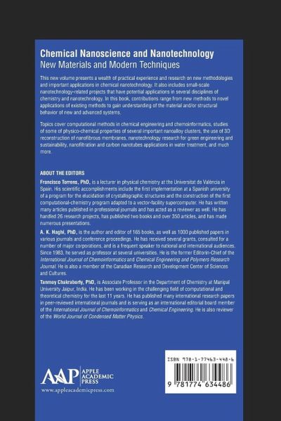 Francisco Torrens, PhD, is a lecturer in physical chemistry at the Universitat de València in Spain. His scientific accomplishments include the first implementation at a Spanish university of a program for the elucidation of crystallographic structures and the construction of the first computational-chemistry program adapted to a vector-facility supercomputer. He has written many articles published in professional journals and has acted as a reviewer as well. He has handled 26 research projects, has published two books and over 350 articles, and has made numerous presentations. A. K. Haghi, PhD, is the author and editor of 165 books, as well as 1000 published papers in various journals and conference proceedings. He has received several grants, consulted for a number of major corporations, and is a frequent speaker to national and international audiences. Since 1983, he served as professor at several universities. He is the former Editor-in-Chief of the International Journal of Chemoinformatics and Chemical Engineering and Polymers Research Journal. He is also a member of the Canadian Research and Development Center of Sciences and Cultures. Tanmoy Chakraborty, PhD, is Associate Professor in the Department of Chemistry at Manipal University Jaipur, India. He has been working in the challenging field of computational and theoretical chemistry for the last 11 years. He has published many international research papers in peer-reviewed international journals and is serving as an international editorial board member of the International Journal of Chemoinformatics and Chemical Engineering. He is also reviewer of the World Journal of Condensed Matter Physics.