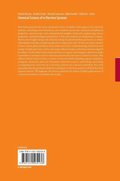 This book presents the most advanced review available of all aspects of pi-electron systems, including novel structures, new synthetic protocols, chemical and physical properties, spectroscopic and computational insights, molecular engineering, device properties and physiological properties. pi-Electron systems are ubiquitous in nature. Plants convert light energy into chemical energy by photosynthetic processes, in which chlorophylls and other porphyrinoids play an important role. On the one hand, research to learn about photosynthesis from nature has led to understanding of electron and energy transfer processes and to achieving artificial energy conversion systems inspired by nature. On the other hand, recent advances in organic and inorganic chemistry make it possible to construct novel pi-electron systems that had never existed in nature. The authors of this book are from a variety of research fields including organic chemistry, inorganic chemistry, physical chemistry, materials science, and biology, providing a comprehensive overview of pi-electron systems for a broad readership. Not only specialists but also graduate students working in pi-electron systems will find the book of great interest. Throughout, the diverse potential for future fruitful applications of pi-electron systems is revealed to the reader.