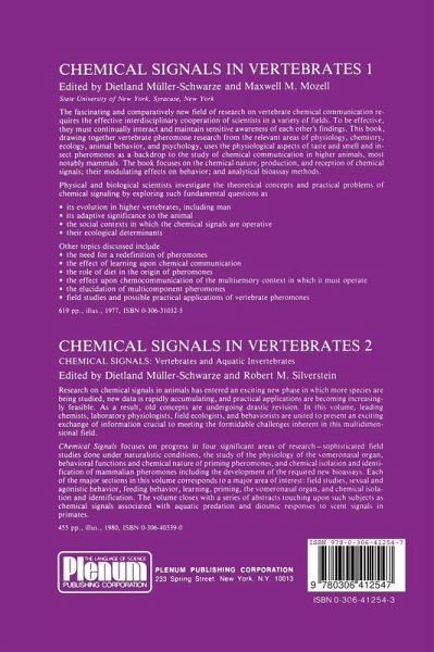 One: Reptiles.- Strike-Induced Chemosensory Searching by Rattlesnakes: The Role of Envenomation-Related Chemical Cues in the Post-Strike Environment.- Fossil and Comparative Evidence for Possible Chemical Signaling in the Mammal-Like Reptiles.- Two: Vomeronasal Organ.- Snake Tongue Flicking Behavior: Clues to Vomeronasal System Functions.- The Accessory Olfactory System: Role in Maintenance of Chemoinvestigatory Behavior.- Flehmen Behavior and Vomeronasal Organ Function.- Three: Neuroendocrinology of Olfaction.- Olfaction in Central Neural and Neuroendocrine Systems: Integrative Review of Olfactory Representations and Interrelations.- The Neuroendocrinology of Scent Marking.- Four: Chemical Signals and Endocrines.- Priming Pheromones in Mice.- Pheromonal Control of the Bovine Ovarian Cycle.- Synchronizing Ovarian and Birth Cycles by Female Pheromones.- Volatile and Nonvolatile Chemosignals of Female Rodents: Differences in Hormonal Regulation.- Five: Chemical Signals and Genetics.- Communication Disparities Between Genetically-Diverging Populations of Deermice.- Six: Field Studies (Pheromone Ecology).- The Ecological Importance of the Anal Gland Secretion of Yellow Voles (Lagurus luteus).- Odor as a Component of Trap Entry Behavior in Small Rodents.- Experimental Modulation of Behavior of Free-Ranging Mammals by Semiochemicals.- Seven: Social Odors: Discrimination and Recognition.- Mechanisms of Individual Discrimination in Hamsters.- Human Olfactory Communications.- Eight: Chemistry.- Studies of the Chemical Composition of Secretions from Skin Glands of the Rabbit Oryctolagus cuniculus.- Nine: Pheromones and Other Physiological Functions.- Thermal and Osmolarity Properties of Pheromonal Communication in the Gerbil, Meriones unguiculatus.- Ten: Abstracts.- The Evolutionof Alarm Pheromones.- Investigation into the Origin(s) of the Freshwater Attractant(s) of the American Eel.- A Pregnancy Block Resulting from Multiple-Male Copulation or Exposure at the Time of Mating in Deer Mice (Peromyscus maniculatus).- Olfactory Communication in Kangaroo Rats (D. merriami).- Odor Preferences of Young Rats: Production of an Attractive Odor by Males.- Rate and Location of Scent Marking by Pikas During the Breeding Season.- Effects of Urine on the Response to Carrot-Bait in the European Wild Rabbit.- An Investigation into the 'Bruce Effect' in Domesticated Rabbits.- Individual Discrimination on the Basis of Urine in Dogs and Wolves.- Throat-Rubbing in Red Howler Nbnkeys (Alouatta seniculus).- Author Index.