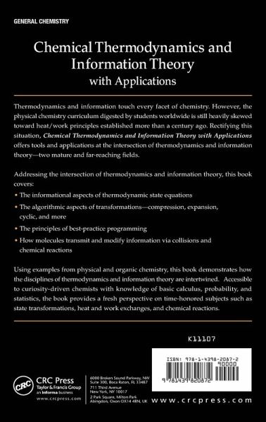 In an approach that intertwines information science and chemistry, this book covers the informational aspects of thermodynamic state equations, the algorithmic aspects of transformations, the principles of best-practice programming, and how molecules transmit and modify information via collisions and chemical reactions. Using examples from physical and organic chemistry, it demonstrates how the disciplines of thermodynamics and information theory are intertwined. The book provides a fresh perspective on time-honored subjects such as state transformations, heat and work exchanges, and chemical reactions.