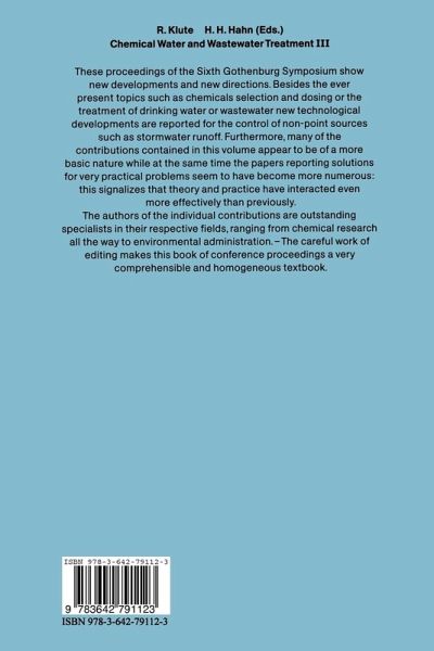 Exactly ten years ago an experiment was started that proved to be extremely successful: the First Gothenburg Symposium. Its intent was to further the under standing of all processes pertaining to Chemical Water and Wastewater Treatment, and to bring together specialists working in basic research as well as in devel opment and administration. Now, the Proceedings of the Sixth Symposium are about to be published, clearly proving that there is a need for this forum. They dramatically illustrate the significance and the dynamic development of the topics of these symposia. It is fascinating to…mehr