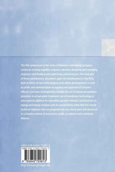 It was intended to return with the International Gothenburg Symposia every other time to the birthplace of these events, Gothenburg in Sweden. But instead the 8th symposium has been invited to be organized and held in Prague, i. e. in the midst of Central and Eastern Europe a region now keen on intensified environmental control. This attests that the symposia have attained such standing in the interna tional world of operators, designers, officers and researchers in water treatment technology that their presence in various parts of the world has been requested. And this ever growing…mehr