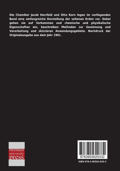 Die Chemiker Jacob Herzfeld und Otto Korn legen im vorliegenden Band eine umfangreiche Darstellung der seltenen Erden vor. Dabei gehen sie auf Vorkommen und chemische und physikalische Eigenschaften ein, beschreiben Methoden zur Gewinnung und Verarbeitung und skizzieren Anwendungsgebiete. Nachdruck der Originalausgabe aus dem Jahr 1901.