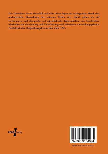 Die Chemiker Jacob Herzfeld und Otto Korn legen im vorliegenden Band eine umfangreiche Darstellung der seltenen Erden vor. Dabei gehen sie auf Vorkommen und chemische und physikalische Eigenschaften ein, beschreiben Methoden zur Gewinnung und Verarbeitung und skizzieren Anwendungsgebiete. Nachdruck der Originalausgabe aus dem Jahr 1901.