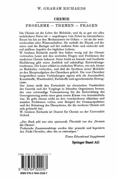 Die Chemie hatte einen Anfang. Man datiert diesen Anfang auf einige hunderttausend Jahre nach dem "Urknall", den wir als Zeitpunkt Null des Universums begreifen k6nnen. Bis dahin hatten sich zunachst Molektile gebildet, aber MilchstraBen oder feste K6rper existierten noch nicht. Die Entstehung von Mole ktilen und ihre Folgereaktionen, in deren VerIauf neue Molektile gebildet werden, die Entstehung fester Stoffe und schlieBlich unserer Welt - all das ist Gegenstand der Chemie. Ais wissen schaftliche Disziplin beschaftigt sich die Chemie vorrangig mit dem Studium der Phanomene im molekularen Bereich. Das Molektil ist der kleinste Bestandteil der Materie, der unter den in unserer Welt gegebenen Bedingungen stabil ist. Daher ist das Studium der Phanomene im molekularen Bereich zwangslaufig von umfassender Natur. Der grundlegende Be .. standteil von beinahe allem, was wir sehen, bertihren, ftihlen, von unserem tatsiichlichen Sein, ist molekular. Somit umfaBt die Chemie die Molekularbiologie, die Eigenschaften der Stoffe und der Gase, sowohl in der Atmosphiire als auch im inter stellaren Raum.