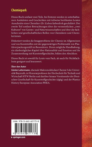 Dieses Buch ist in zwei Teile aufgeteilt und beschreibt im Ersteren anhand von köstlichen Anekdoten und Geschichten mit teilweise berühmten Leuten mein Chemiker-(Er-)Leben. Im zweiten Teil diskutiere ich die vermeintlichen "zwei Kulturen" von Geistes- und Naturwissenschaften, Imageprobleme der Chemie, ChemikerInnen, Kunststoffen/Plastik, sowie deren mögliche Bewältigung (Rationalität und Emotion) und die gegenwärtige Plastikmüllproblematik in Zusammenhang mit der Kunststoffgeschichte. Dieses Buch ist sowohl für Leute vom Fach, als auch Nichtfachleute geeignet.